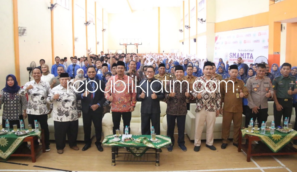 Sidoarjo (republikjatim.com) - Bupati Sidoarjo, Ahmad Muhdlor Ali meresmikan SMAMITA Mart ditandai dengan penandatanganan prasasti di Aula SMA Muhammdiyah 1 Taman (Smamita) Sidoarjo, Senin (05/06/2023). Bupati muda yang akrab disapa Gus Muhdlor ini berharap berdirinya SMAMITA Mart di lingkungan sekolah ini membantu Pemkab Sidoarjo dalam peningkatan kapasitas siswa di bidang entrepreneur (kewirausahaan).