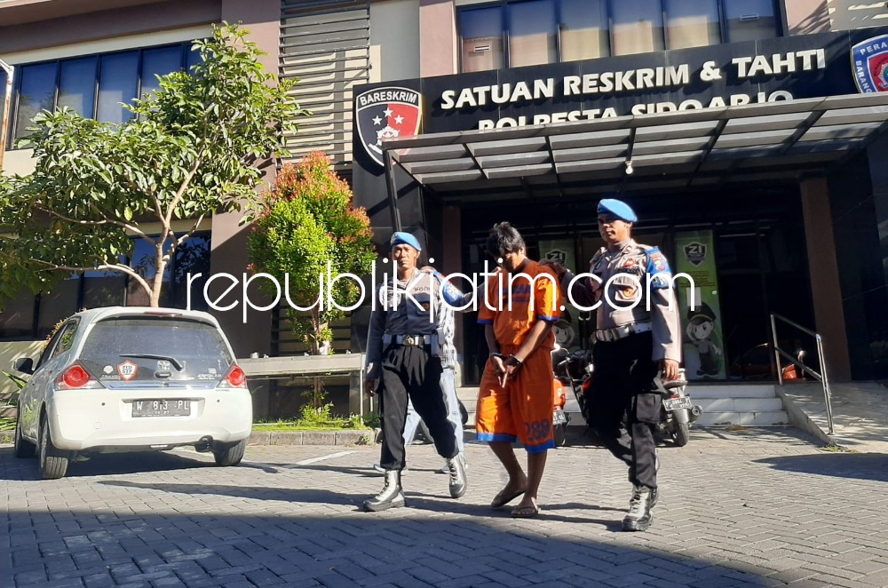 Selanjutnya, tidak lama kemudian tersangka langsung terjatuh. Seketika itu, tersangka diamankan warga dan nyaris dihajar massa (diamuk) warga sebelum dilaporkan ke Polresta Sidoarjo.