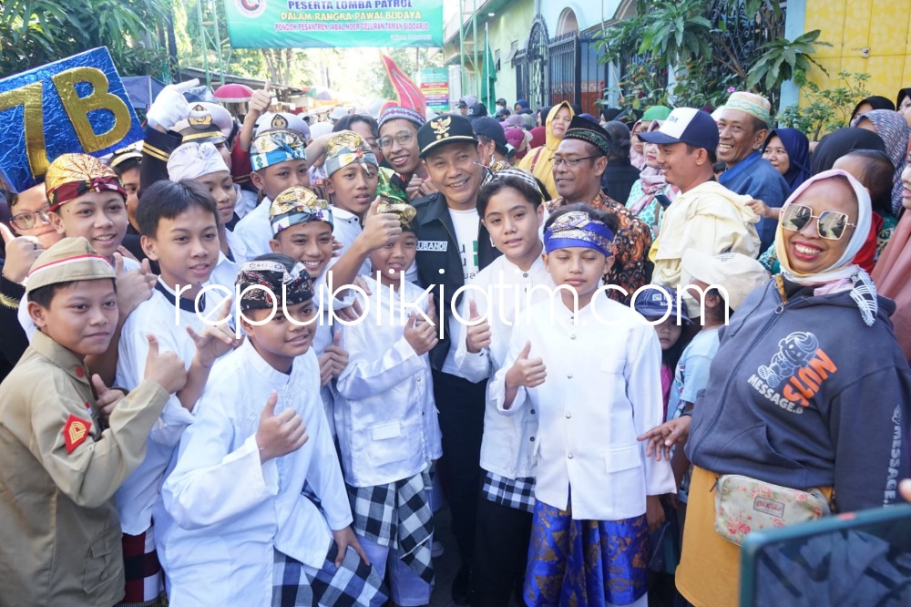 Sidoarjo (republikjatim.com) - Momentum perayaan Haflah Yayasan Pondok Pesantren Jabal Noer, Desa Geluran, Kecamatan Taman, Sidoarjo diwarnai Pawai Budaya Janorta Tahun 2023 dan Musik Patrol Bershalawat.