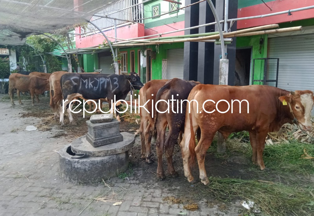 Sidoarjo (republikjatim.com) - Keluarga Besar Yayasan Pendidikan Ma' arif (YPM) Sepanjang, Kecamatan Taman, Sidoarjo menyembelih 13 ekor sapi untuk kurban Idul Adha 1444 Hijriyah. Prosesi penyembelihan dilaksanankan di halaman Gedung Komplek Wachid Hasyim 2 Taman, Sabtu (01/07/2023).