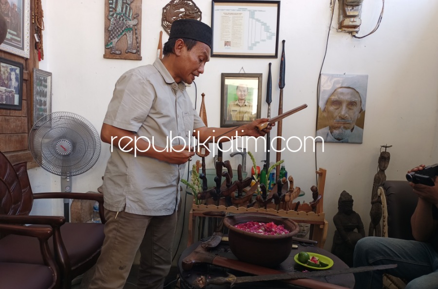 Sidoarjo (republikjatim.com) - Sehari sebelum Tahun Baru Islam tanggal 1 Muharram 1445 Hijriyah atau yang dikenal dengan sebutan 1 Suro dalam kalender Jawa, sejumlah kolektor benda pusaka disibukkan membersihkan benda pusakanya. Tradisi ini biasanya disebut dengan jamasan atau mencuci benda pusaka seperti keris, tombak maupun pedang yang dikenal sebagai benda pusaka warisan leluhur.