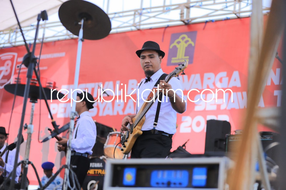 Sidoarjo (republikjatim.com) - Kanwil Kemenkumham Jatim terus berupaya memberi wadah kepada warga binaan untuk mengekspresikan diri. Salah satunya melalui gelaran Festival Band Antar Warga Binaan Pemasyarakatan se-Jatim yang digelar di Lapas Kelas I Surabaya yang ada di Desa Kebonagung, Kecamatan Porong, Sidoarjo, Kamis (03/08/2023).