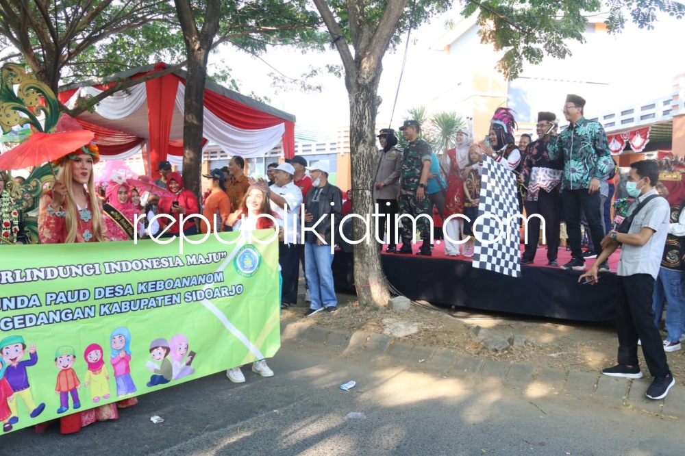 Sidoarjo (republikjatim.com) - Meriah. Kata itu tergambar dalam acara pawai anak memeriahkan Hari Anak Nasional (HAN) ke 39 Tahun 2023 yang diberangkatkan Bupati Sidoarjo, Ahmad Muhdlor Ali di Taman Nagoya Perumahan Puri Surya Jaya, Gedangan, Kecamatan Gedangan, Sidoarjo, Sabtu (05/08/2023). Kegiatan yang digelar Kecamatan Gedangan kali pertama itu diikuti 1.500 peserta.