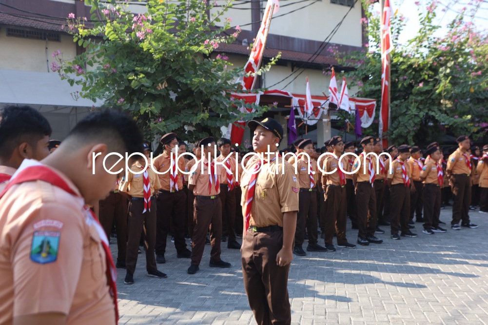 Sidoarjo (republikjatim.com) - Aktivitas Pramuka mengajarkan kedisiplinan, ketangkasan dan ketrampilan. Peringatan Hari Pramuka ke 62 dilaksanakan di SMP Al Muslim dengan kegiatan upacara dan beberapa kegiatan lainnya.
