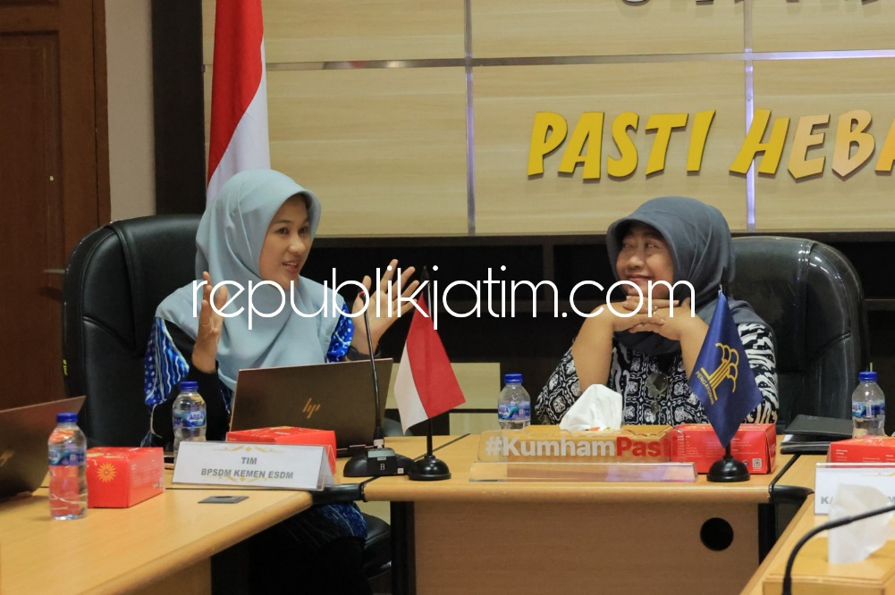 Rombongan PPSDM KEBTKE dipimpin Kabag Umum, Rizki Amalia Nurhayati. Rombongan dari Jakarta diterima Pokja Pembangunan Zona Integritas Kanwil Kemenkumham Jatim di ruang Hayam Wuruk.