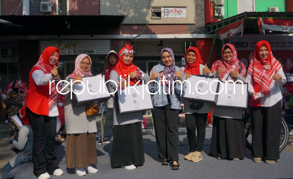 Istri Bupati Sidoarjo yang sekaligus Ketua TP PKK Kabupaten Sidoarjo, Ny Sa'adah Ahmad Muhdlor menghadiri acara senam bersama dalam rangka HUT Kemerdekaan RI ke 78 yang diselenggarakan oleh Muslimah Sidoarjo Bershalawat (MSB) di Halaman Ruko Kahuripan Nirvana Village, Sidoarjo, Sabtu (26/08/2023).