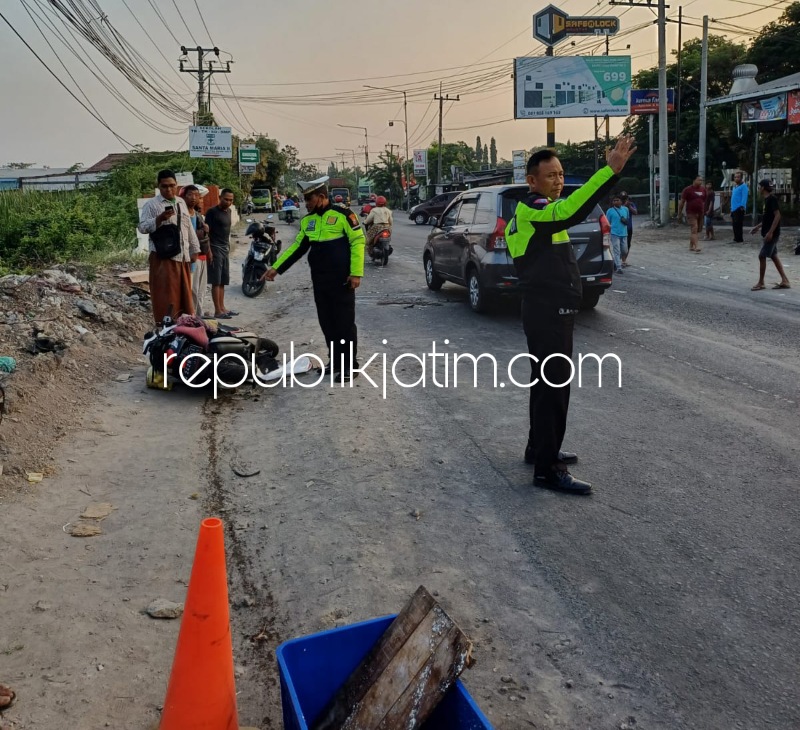 Sidoarjo (republikjatim.com) - Kecelakaan maut kembali terjadi di jalur tengkorak JL Raya Lingkar Timur, Sidoarjo. Dalam kecelakaan melibatkan motor Honda Scoopy dan Mobil Daihatsu Sigra itu, menyebabkan seorang pengendara motor tewas di lokasi kejadian.