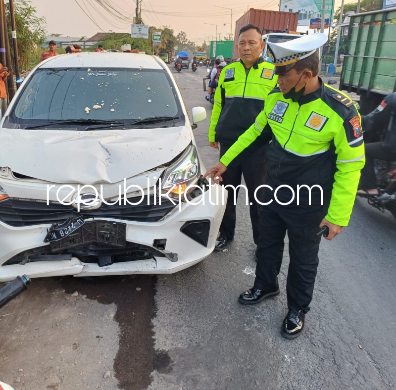 Ony menjelaskan dalam kecelakaan itu melibatkan mobil Daihatsu Sigra bernopol W 1008 ZV yang dikemudikan MAZ (25) warga Dusun Dondongan, Desa Kedungpeluk, Kecamatan Candi, Sidoarjo. Sedangkan lawannya yakni sepeda motor Honda Scoopy bernopol W 2428 NCI yang dikendarai Mat Rifai (57) warga Desa Kalipecabean, Kecamatan Candi, Sidoarjo.