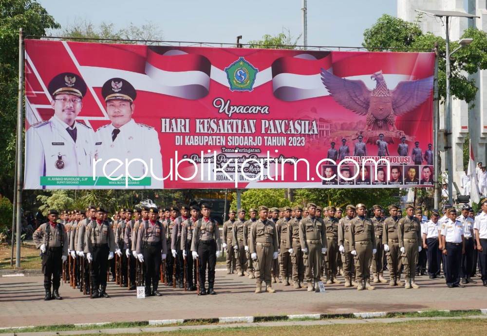 Di hadapan 525 pasukan upacara yang terdiri dari pelajar, ASN, TNI, Polri dan unsur masyarakat, Komandan Kodim 0816 Sidoarjo, Letkol Inf Guntung Dwi Prasetyo mengingatkan kepada seluruh peserta dan masyarakat akan pentingnya menjunjung tinggi nilai-nilai Pancasila sebagai landasan negara dan pandangan hidup bangsa Indonesia.