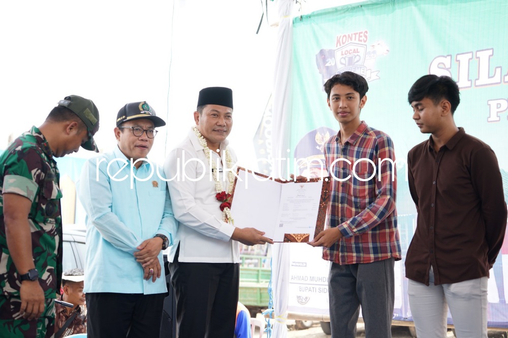 Sidoarjo (republikjatim.com) - Dinas Pangan dan Pertanian Pemkab Sidoarjo menggelar silaturahmi peternak kambing dan domba, di Lapangan Area Tambak, Desa Damarsi, Kecamatan Buduran, Sidoarjo, Rabu (01/11/2023). Kegiatan ini sebagai wujud upaya meningkatkan ketahan pangan di Kabupaten Sidoarjo.