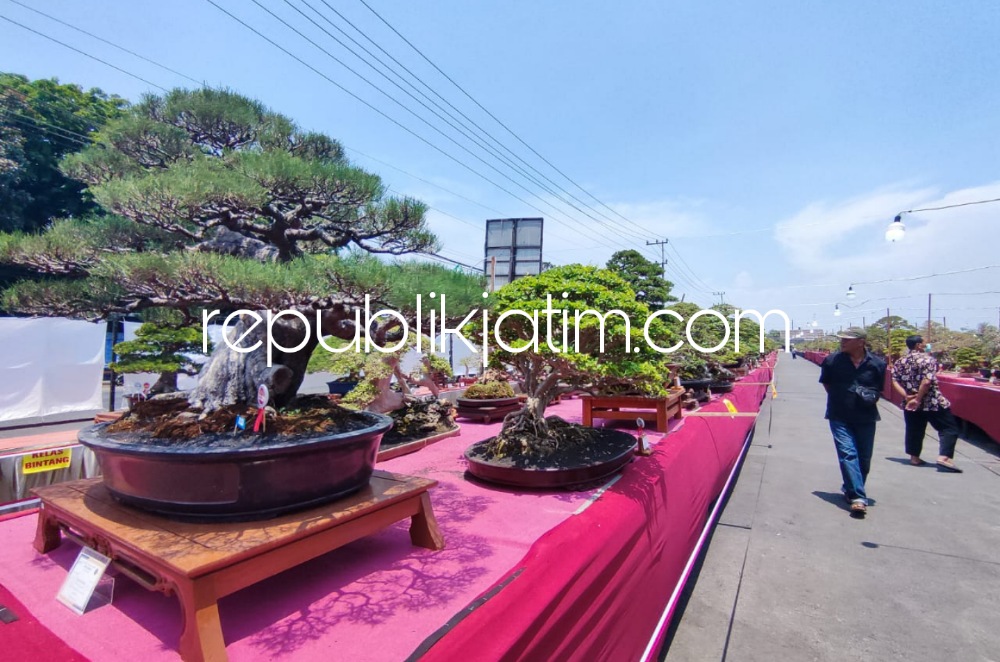 Sidoarjo (republikjatim.com) - Bupati Sidoarjo, Ahmad Muhdlor Ali mendorong seniman bonsai yang tergabung dalam Perkumpulan Penggemar Bonsai Indonesia (PPBI) tumbuh menjadi salah satu kekuatan ekonomi kreatif unggulan di Sidoarjo. Hal ini setelah, tidak kurang dari 1.757 seniman bonsai memamerkan hasil karya unggulannya di halaman parkir Mal Pelayanan Publik (MPP) di JL Lingkar Timur, Sidoarjo.