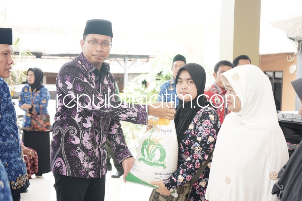 Saat pendistribusian bahan pangan beras kali ini, Bupati Sidoarjo Ahmad Muhdlor Ali didampingi Kepala Dinsos Pemkab Sidoarjo Ahmad Misbahul Munir, Kepala Dinas Pangan dan Pertanian Pemkab Sidoarjo Eni Rustianingsih serta Camat Tarik Iswadi Pribadi.