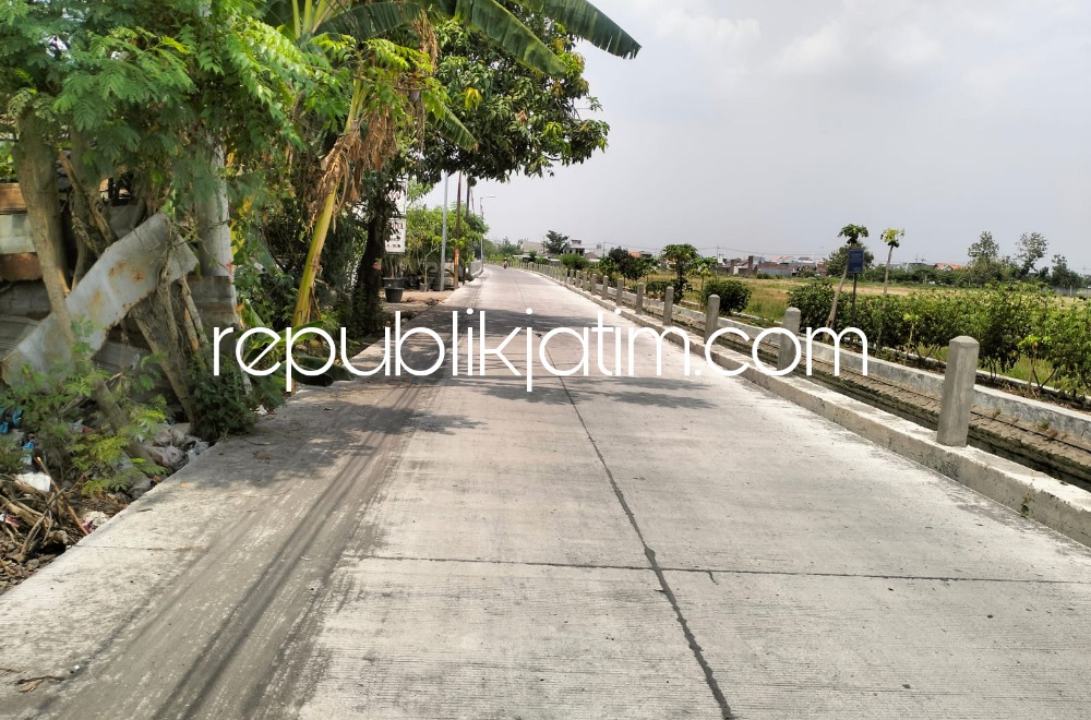 Sidoarjo (republikjatim.com) - Proyek betonisasi ruas jalan Desa Banjarsari - Damarsih, Kecamatan Buduran, Sidoarjo saat ini pengerjaannya memasuki tahap akhir. Proyek jalan dengan panjang 1.838 meter dan lebar 5 meter itu tengah dikebut pekerjaannya oleh Dinas Pekerjaan Umum Bina Marga dan Sumber Daya Air (PUBM dan SDA) Pemkab Sidoarjo.