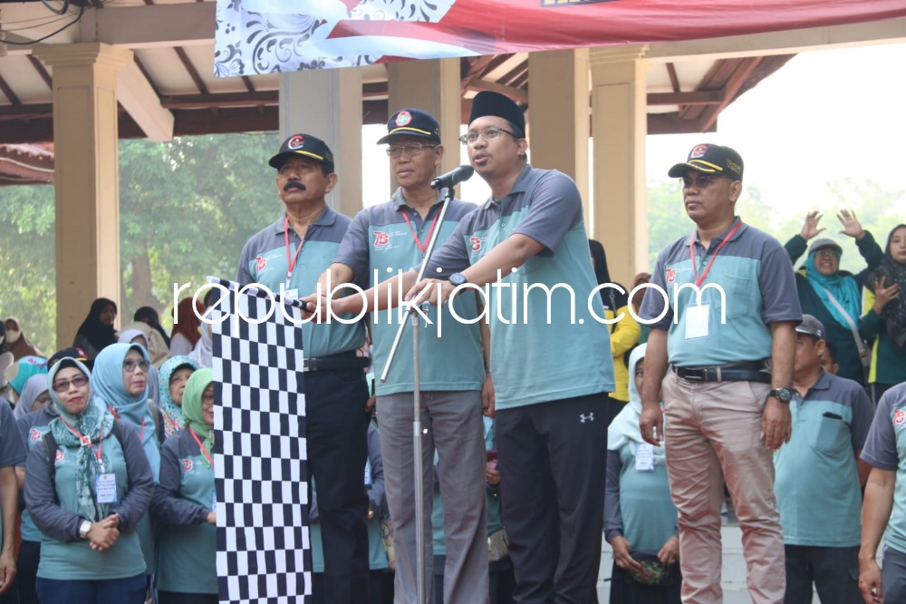 Sidoarjo (republikjatim.com) - Sebanyak 5.000 perwakilan guru sekolah negeri dan swasta se Kabupaten Sidoarjo memeriahkan puncak peringatan Hari Guru Nasional (HGN) Tahun 2023 dan HUT ke 78 PGRI dengan jalan sehat, di Alun - Alun, Sidoarjo, Minggu (26/11/2023). Jalan Sehat ini diberangkatkan Bupati Sidoarjo, Ahmad Muhdlor Ali bersama Kepala Dinas Pendidikan Pemkab Sidoarjo, Dr Tirto Adi, Ketua PGRI Kabupaten Sidoarjo, Edy Wuryanto serta jajaran pengurus PGRI Sidoarjo.