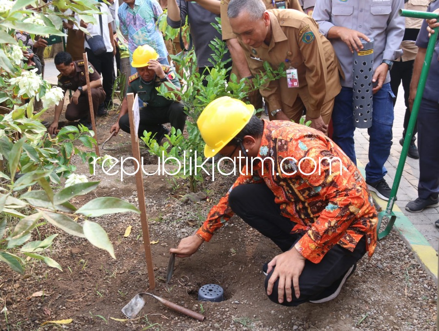 Sidoarjo (republikjatim.com) - Gerakan membuat lubang resapan (biopori) 1 Aparatur Sipil Negara (ASN) 2 lubang biopori dilakukan Bupati Sidoarjo, Ahmad Muhdlor Ali bersama jajaran ASN Pemkab Sidoarjo. Pembuatan lubang biopori itu sebagai bentuk antisipasi sekaligus meminimalisir banjir.