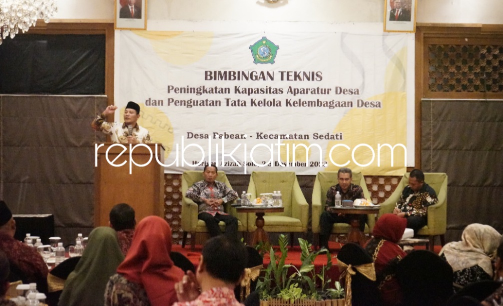 Sidoarjo (republikjatim.com) - Peningkatan kapasitas aparatur pemerintahan desa dinilai sangat penting. Apalagi aparatur pemerintah desa sebagai motor penggerak pembangunan di setiap desa. Untuk itu, Pemerintah Desa Pabean, Kecamatan Sedati, Sidoarjo menggelar Bimbingan Teknik (Bintek) Peningkatan Kapasitas Aparatur Pemerintahan Desa di Hotel Horizon Aziza, Solo, Sabtu (2/12/2023) malam. Kegiatan ini dibuka Wakil Bupati (Wabup) Sidoarjo, Subandi.