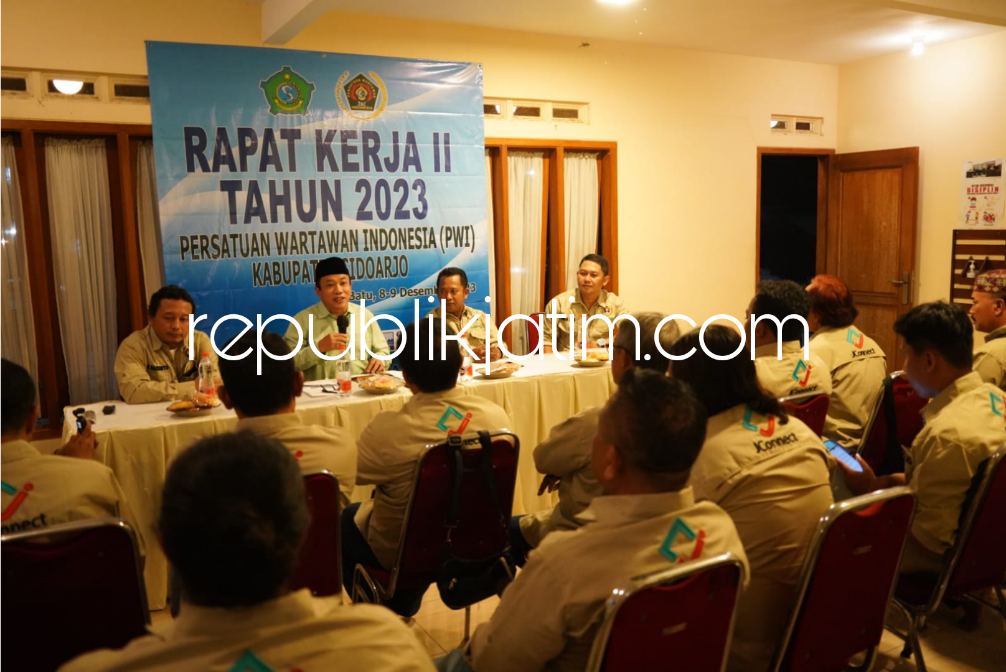 Sidoarjo (republikjatim.com) - Persatuan Wartawan Indonesia (PWI) Kabupaten Sidoarjo menggelar Rapat Kerja (Raker) II Tahun 2023 di Villa Attaka Kota Batu, Jumat (8/12/2023) hingga Sabtu (9/12/2023). Pembukaan raker dilaksanakan pada Jumat (8/9/2023) malam dan dibuka langsung Ketua DPRD Sidoarjo H Usman, M Kes.