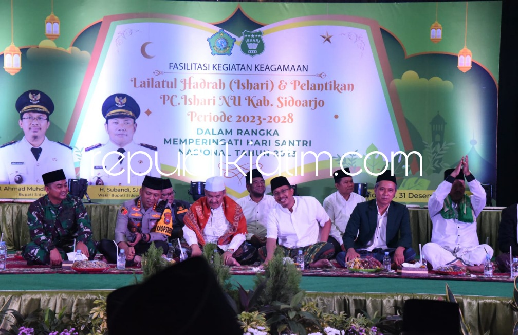 Acara itu dihadiri Dandim 0816 Sidoarjo Letkol Inf Guntung Dwi Prasetyo serta Kapolresta Sidoarjo Kombes Pol Christian Tobing bersama ribuan jamaah hadrah itu. Kegiatan bersholawat itu menjadi rangkaian memperingati Hari Santri sekaligus mengiringi pelantikan Ishari NU Kabupaten Sidoarjo periode 2023 - 2028. Terpilih sebagai Ketua Ishari Kabupaten Sidoarjo periode 2023 - 2028, KH Mukayat.