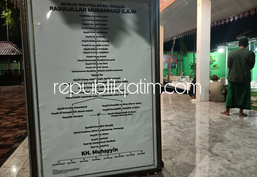 Berdasarkan silsilahnya, dari bagan silsilah yang terdapat di lokasi, dapat diketahui Mbah Muchayyin merupakan keturunan dari Kangjeng Sunan Ampel (Raden Rahmat) dan Kangjeng Sunan Gunung Jati (Syarif Hidayatullah), Cirebon.