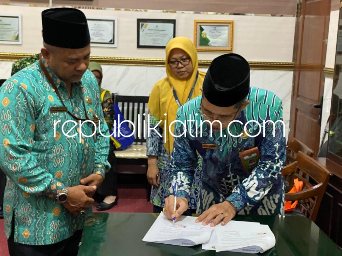 Sidoarjo (republikjatim.com) - SMA Muhammadiyah 1 Taman (Smamita) dan Kantor Kementrian Agama (Kemenag) Kabupaten Sidoarjo menjalin kerja sama penyelenggaraan dan pengembangan Excellent Tahfidh Program. Penandatanganan Memorandum of Understanding (MoU) itu dilakukan Waka Kurikulum Smamita Sidoarjo, Irma Rusdiana SPd dan Kepala Kemenag Sidoarjo, H M Arwani MHi di Gedung Kemenag Sidoarjo, Kamis (18/01/2024) kemarin.
