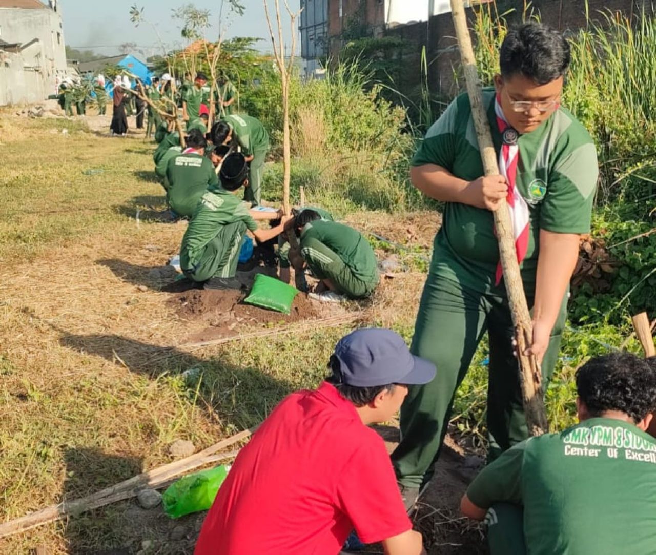 Selain itu, mereka juga menanam 20 pohon Tabebuya di lahan baru yang bakal disiapkan menjadi Green Tecno Park bagi sekolah swasta yang selalu kebanjiran siswa baru ini. Tidak hanya itu, para siswa juga melaksanakan penanaman berbagai jenis sayuran di tepi sungai yang berbatasan langsung antara Desa Sarirogo, Kecamatan Sidoarjo dan Desa Anggaswangi, Kecamatan Sukodono.