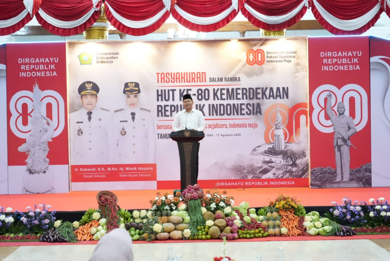 "Syukur alhamdulillah, pada peringatan Kemerdekaan ke 80 ini, Kabupaten Sidoarjo terus menunjukkan perkembangan signifikan di berbagai sektor seperti pembangunan infrastruktur, peningkatan kualitas pelayanan publik, penguatan ekonomi kerakyatan, peningkatan mutu pendidikan dan kesehatan serta peningkatan kesejahteraan masyarakat terus menjadi fokus utamanya," ujar Subandi.