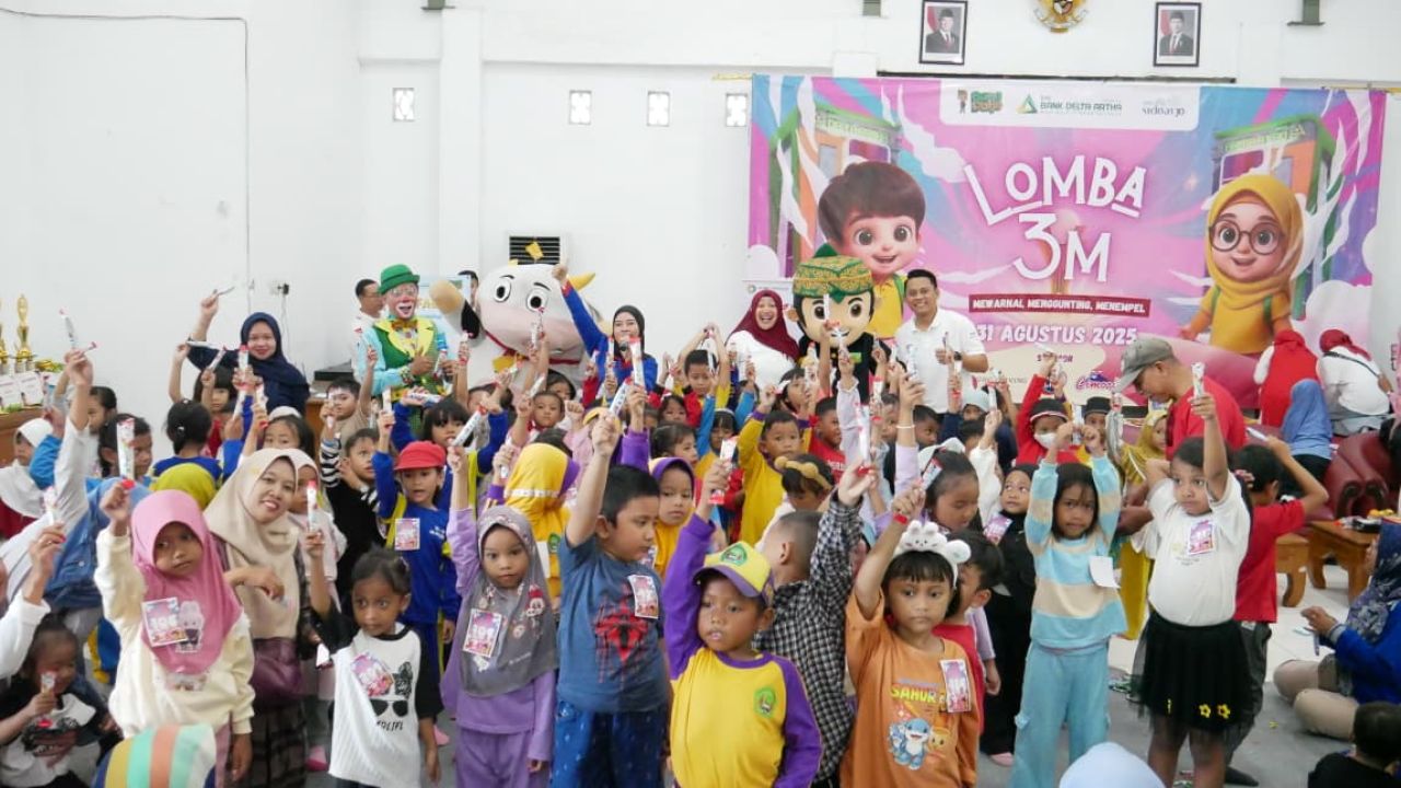 Sidoarjo (republikjatim.com) - Tangan - tangan mungil siswa dan siswi Taman Kanak-Kanak (TK) di Sidoarjo tampak riang mewarnai, menggunting dan menempel kertas warna-warni. Di balik keseruan itu, PT BPR Delta Artha Perseroda menyelipkan pesan penting yaitu membiasakan menabung sejak dini melalui Lomba 3M (Mewarnai, Menggunting dan Menempel) itu.