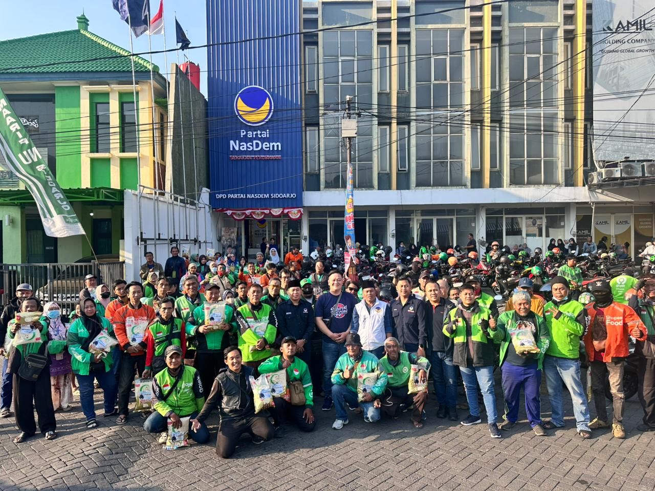 "Melalui DPD NasDem Sidoarjo, kami membagikan 300 paket beras yang kami salurkan langsung kepada para pengemudi ojol yang sehari-hari menggantungkan hidupnya di jalanan," ujar Muh Dimas Zakaria Pratama.