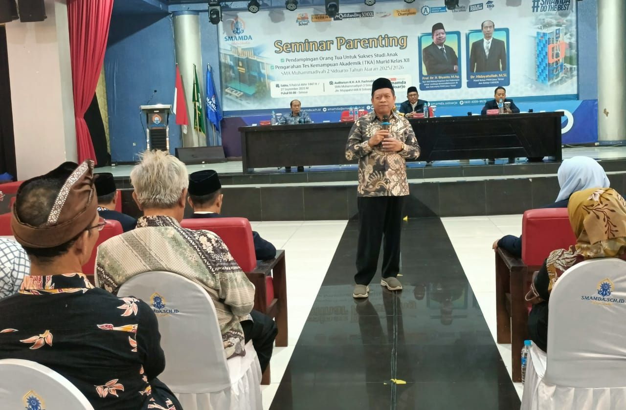 Sidoarjo (republikjatim.com) - Kementerian Pendidikan Dasar dan Menengah (Kemendikdasmen) memastikan hasil Tes Kemampuan Akademik (TKA) bagi siswa kelas XII SMA dan sederajat bakal menjadi modal utama masuk Perguruan Tinggi Negeri (PTN), Akademi Militer (Akmil), Akademi Polisi (Akpol) atau bahkan sekolah kedinasan lainnya melalui jalur prestasi. Kepastian ini, disampiakan Staf Ahli Bidang Regulasi dan Hubungan Antar Lembaga Kemendikdasmen Prof Dr Biyanto, M Ag saat memberi paparan materi tentang Pengarahan TKA Siswa Kelas XII di SMA Muhammadiyah 2 (Smamda) Sidoarjo dalan kegiatan parenting bersama orangtua siswa kelas XII di Auditorium KH AR Fachruddin Smamda Sidoarjo, Sabtu (27/09/2025).