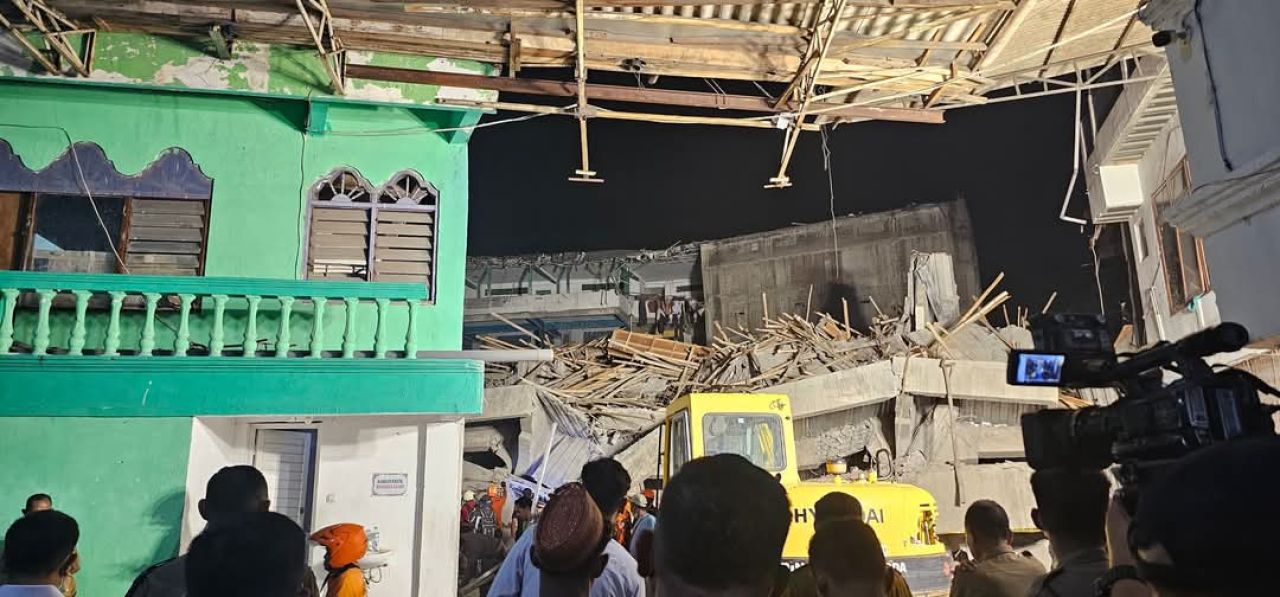 "Pembangunan ini, proses pengecoran yang terakhir. Pembangunan sudah mulai sekitar 10 bulan lalu sekarang tinggal finishing. Dhuhur itu seharusnya pengecoran sudah selesai. Sepertinya penopang cor tidak kuat sehingga menekan ke bawah dan ambruk total," tegasnya.