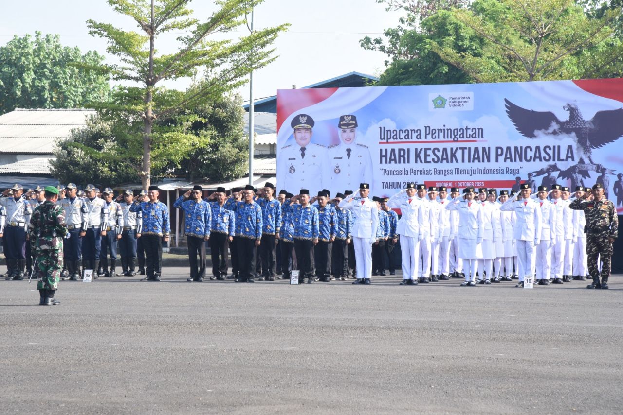 Sidoarjo (republikjatim.com) - Upacara memperingati Hari Kesaktian Pancasila digelar Pemkab Sidoarjo di halaman Mall Pelayanan Publik (MPP) JL Raya Lingkar Timur, Sidoarjo, Rabu (01/10/2025). Upacara yang digelar setiap tanggal 1 Oktober 2025 itu, diikuti ratusan pasukan TNI, Polri dan berbagai instansi pemerintah daerah lainnya.