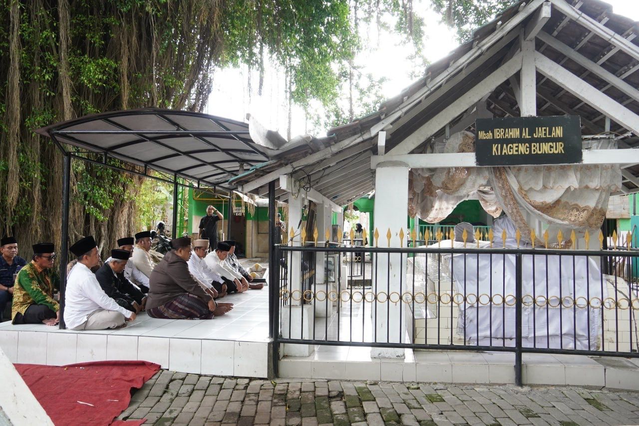 Bupati Sidoarjo, Subandi mendatangi makam Mbah Bungur yang terletak di Jalan Bungurasih Tengah, Jumat (31/10/2025). Kedatangannya juga untuk memenuhi undangan Pemdes Bungurasih yang sedang merayakan Hari Jadi Desa Bungurasih yang ke -