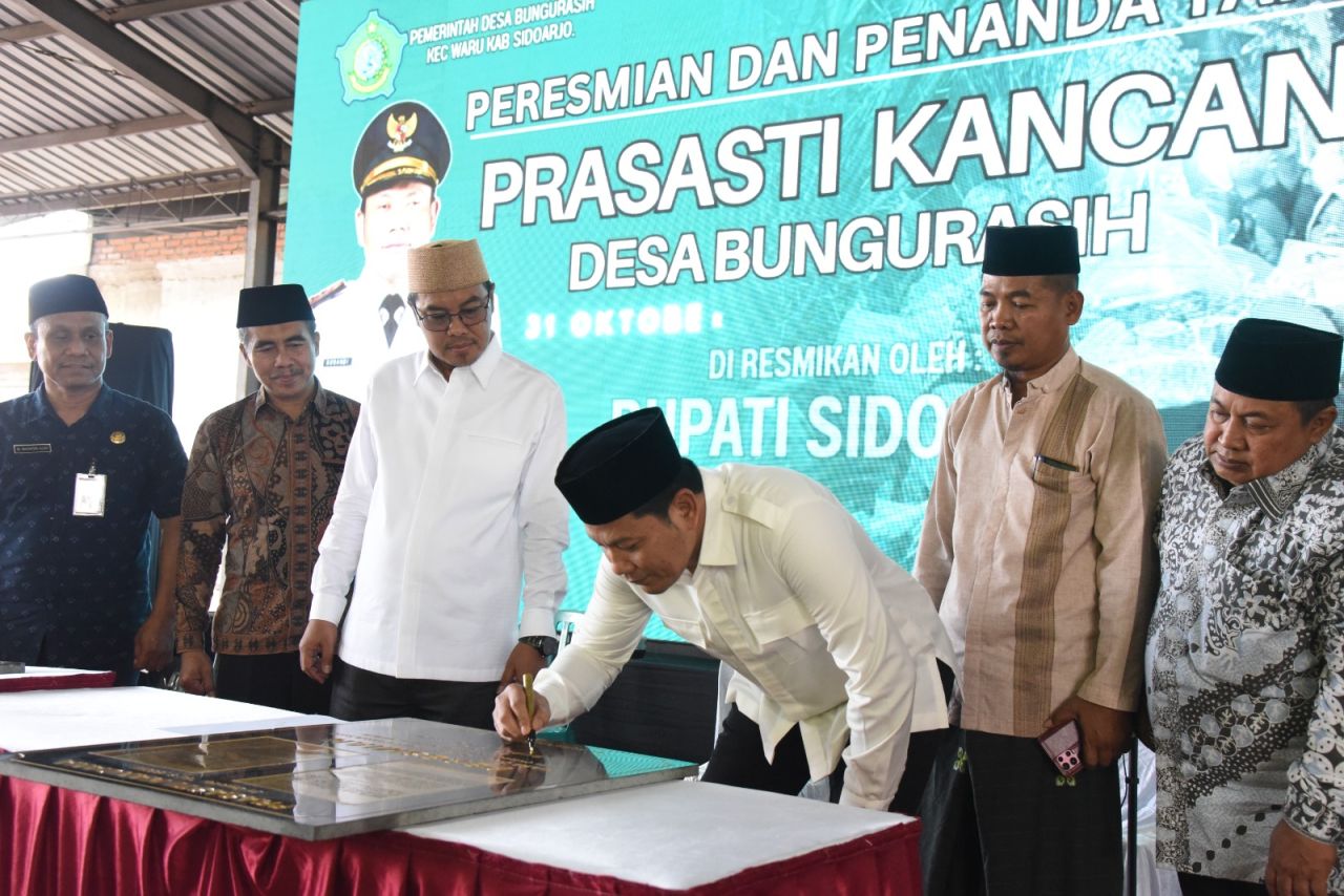 Dalam kesempatan itu, Subandi didaulat untuk menandatangani Prasasti Kancana Hari Jadi Desa Bungurasih. Menurutnya, prasasti itu sebagai simbol komitmen bersama menjaga warisan dan semangat pembangunan desa.