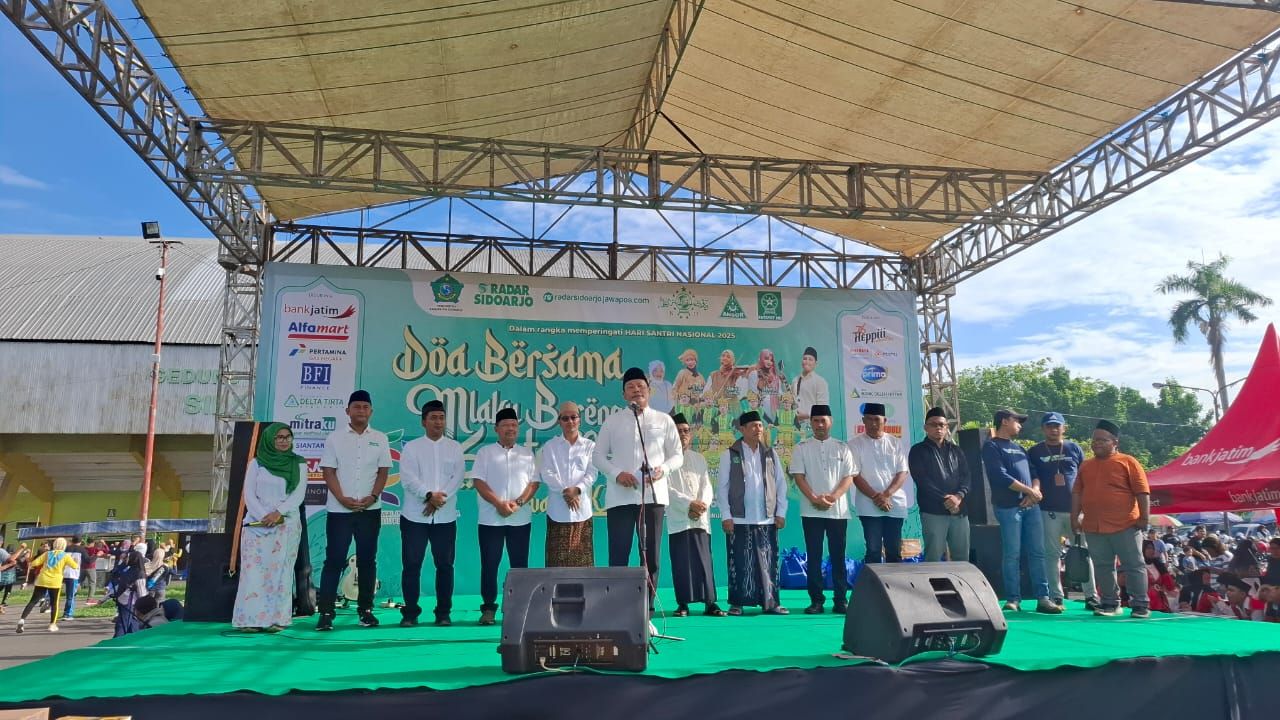 Sidoarjo (republikjatim.com) - Ribuan peserta memadati kawasan Parkir Timur GOR Delta Sidoarjo, Minggu (02/11/2025). Kegiatan Doa Bersama, Mlaku Bareng Santri dan Festival UMKM 2025 digelar meriah dalam rangka memperingati Hari Santri Nasional (HSN) Tahun 2025.