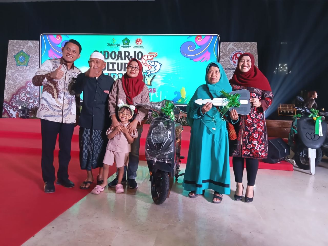 Sedangkan untuk hadiah Sepeda Listrik diantaranya diperoleh Fitria Mita Sundari warga Kedungsroko 14 Surabaya, Titi Handayani warga Karangploso, Sidoarjo dan Elfira Rosa Mujayanti Warga JL Raya Banar RT 19 RW 9, Sidoarjo.