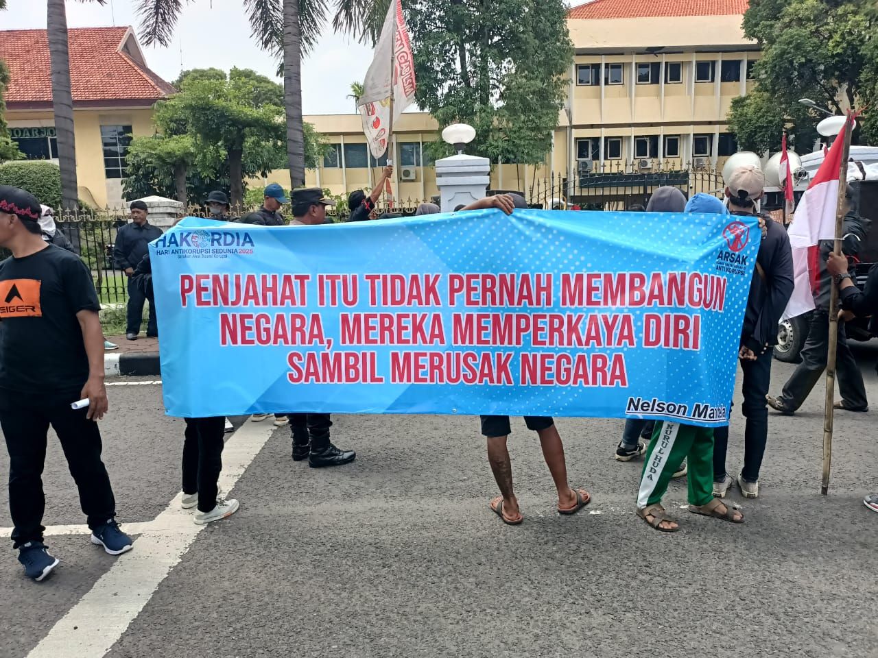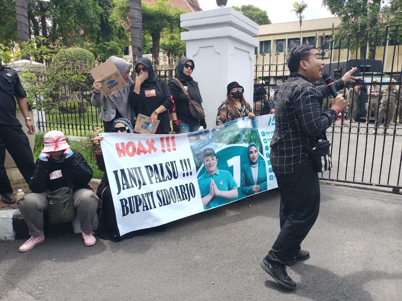 Dalam aksi itu massa juga membawa dua spanduk besar hujatan. Diantaranya Hoax!! Janji Bupati Sidoarjo dan Penjahat Itu Tidak Pernah Membangun Negara, Mereka Memperkaya Diri Sambil Merusak Negara. Selain itu, massa menuntut kinerja serius para aparat penegak hukum dan pemerintah daerah yang dinilai gagal menjaga integritas pelayanan publik.