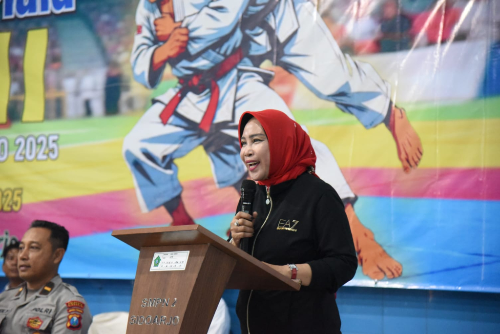 Sidoarjo (republikjatim.com) - Kejurkab Jujitsu Piala KONI Kabupaten Sidoarjo 2025 resmi dibuka Wakil Bupati (Wabup) Sidoarjo, Mimik Idayana di Aula SMP Negeri 2 Sidoarjo, Sabtu (20/12/2025). Terdapat 142 atlet Jujitsu yang ikut ajang olahraga beladiri itu.