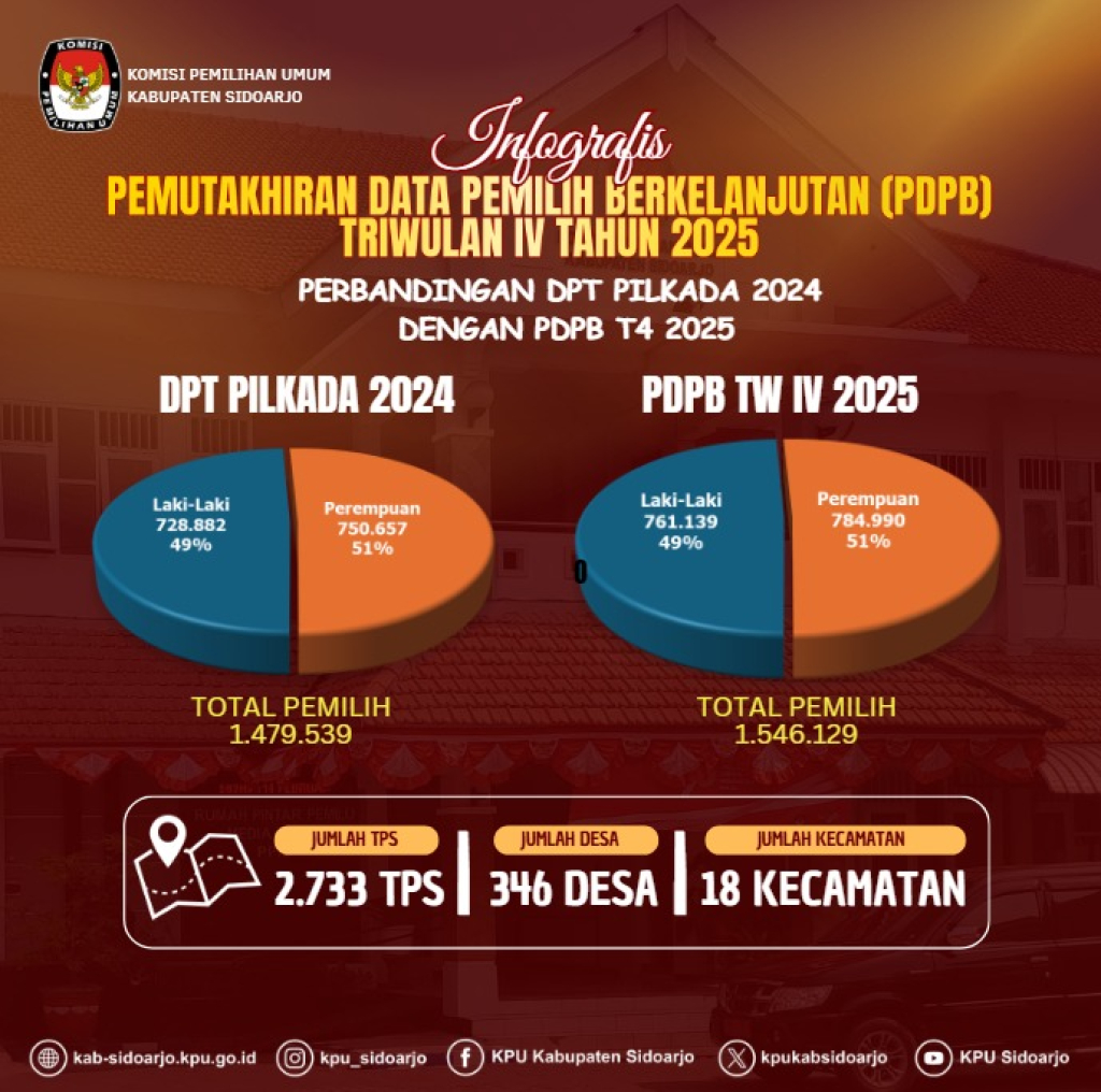 PDPB bukan sekadar rutinitas administratif saja. Melainkan fondasi utama tegaknya keadilan pemilu. Di Kabupaten Sidoarjo, hasil PDPB Triwulan IV 2025 memang mencatatkan angka pemilih sebesar 1.546.129 jiwa lebih rendah dibandingkan data penduduk wajib KTP sebesar 1.574.220 (data per 2 oktober 2025). Dari angka itu, masih banyak penduduk Sidoarjo yang belum terdaftar sebagai pemilih.
