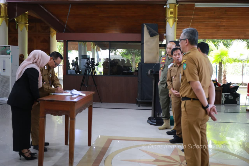 Sidoarjo (republikjatim.com) - Pemkab Sidoarjo melaksanakan Penandatanganan Perjanjian Kinerja Kepala Perangkat Daerah Tahun 2026 serta Penandatangan Perjanjian Kerjasama (PKS) Pegawai Pemerintah dengan Perjanjian Kerja (PPPK) Paruh Waktu di lingkungan Pemkab Sidoarjo. Kegiatan ini, dilaksanakan di Pendopo