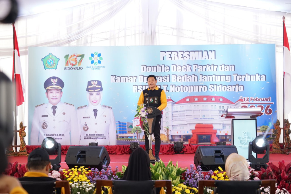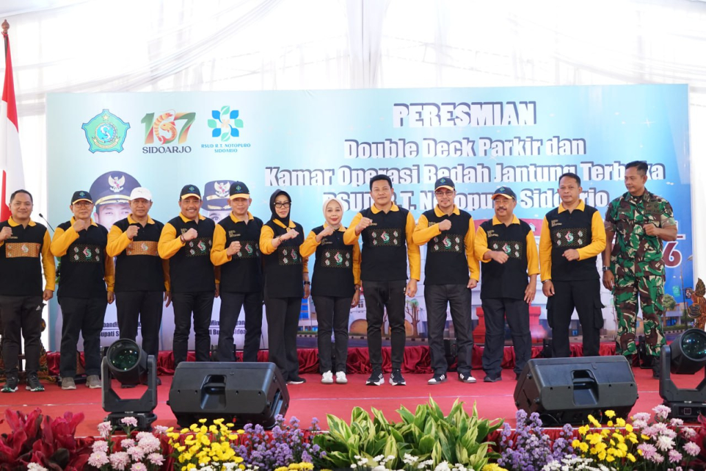 parkir double deck dan kamar operasi bedah jantung terbuka di RSUD RT Notopuro Sidoarjo, Jumat (13/02/2026). Peresmian ditandai dengan penekanan tombol bersama Ketua DPRD Sidoarjo Abdillah Nasih, Sekretaris Daerah (Sekda) Sidoarjo Dr Fenny Apridawati serta Ketua TP PKK Kabupaten Sidoarjo dr Sriatun Subandi.
