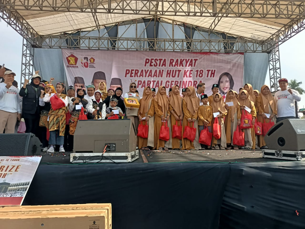 Perayaan HUT Gerindra ke 18 ini berlangsung sangat meriah dengan konsep pesta rakyat. Acara dimulai sejak pagi hari dengan agenda, Jalan Sehat, Senam Sehat, pemeriksaan kesehatan gratis dan pameran UMKM di kanan kiri tenda. Acara diikuti sekitar 1.000 massa yang memadati lapangan dengan hiburan penampilan Orkes Melayu (OM) yang menghibur seluruh kader dan simpatisan.