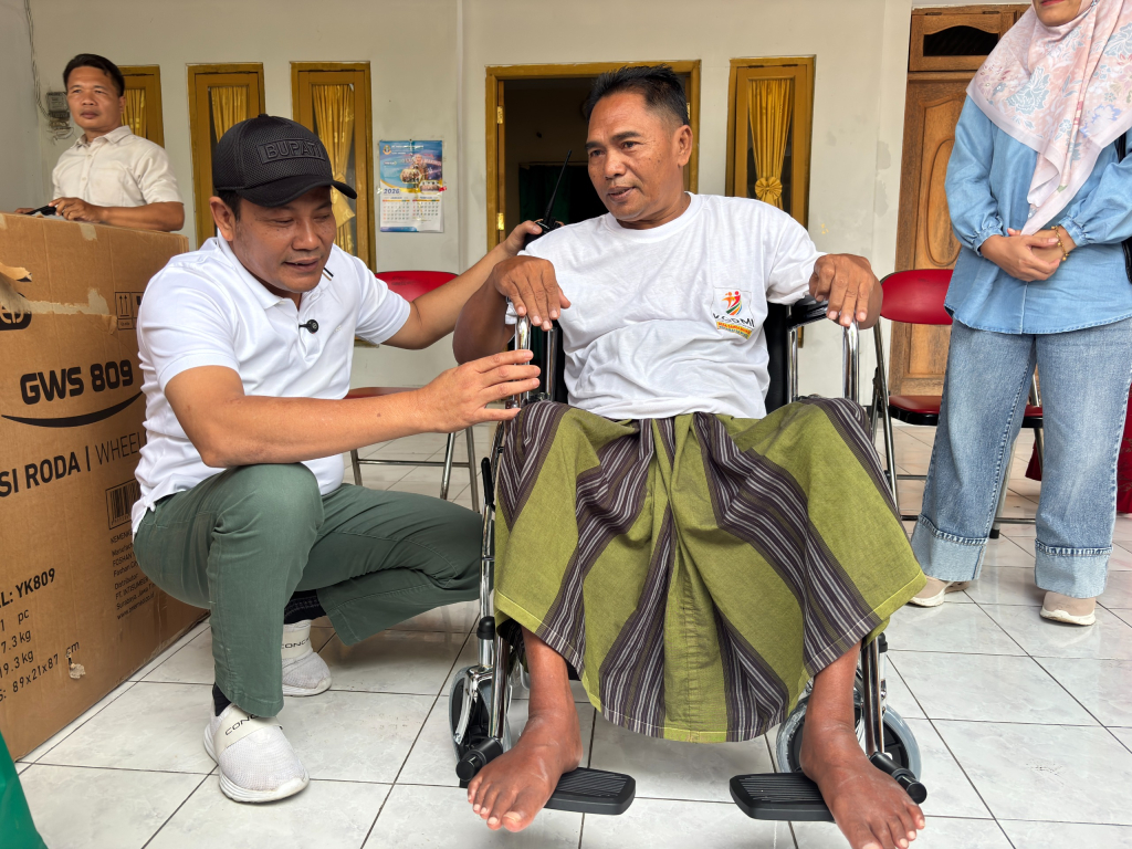 Penerima bantuan pertama yakni Achmad Kandek (60), warga Desa Sawocangkring yang mengalami disabilitas akibat saraf kejepit sejak lama. Bantuan juga diberikan kepada M Khoiril Arifin (65), warga Desa Sawocangkring yang mengalami keterbatasan fisik akibat stroke. Sementara penerima ketiga, Jumali (55) warga Desa Wonokalang, Kecamatan Wonoayu, yang juga menderita stroke dan membutuhkan kursi roda untuk menunjang aktivitas sehari - hari.