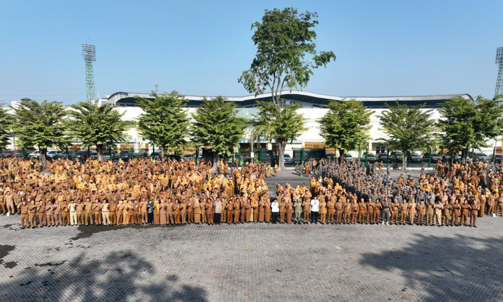 Sidoarjo (republikjatim.com) - Bupati Sidoarjo, Subandi memimpin apel pagi sekaligus rangkaian acara halal bihalal yang dihadiri seluruh Aparatur Sipil Negara (ASN) di lingkungan Pemerintah Kabupaten Sidoarjo di parkir timur GOR Delta, Senin (30/03/2026).