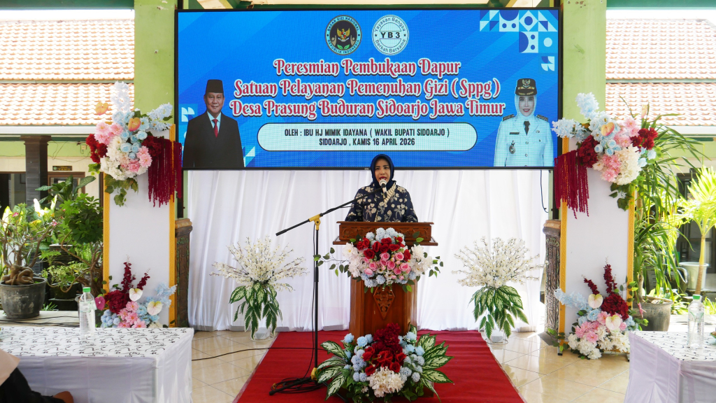 Sidoarjo (republikjatim.com) - Wakil Bupati (Wabup) Sidoarjo, Mimik Idayana meresmikan Satuan Pelayanan Pemenuhan Gizi (SPPG) di Desa Prasung, Kecamatan Buduran, Sidoarjo, Kamis (16/04/2026). Peresmian itu, sebagai bagian dari upaya menghadirkan layanan gizi yang terintegrasi sekaligus memberdayakan potensi ekonomi lokal.
