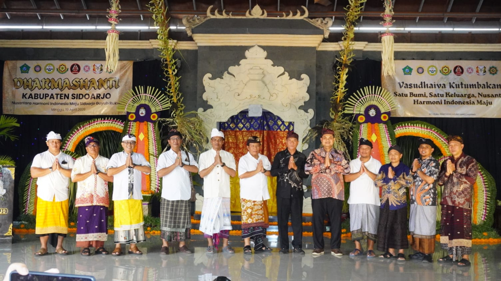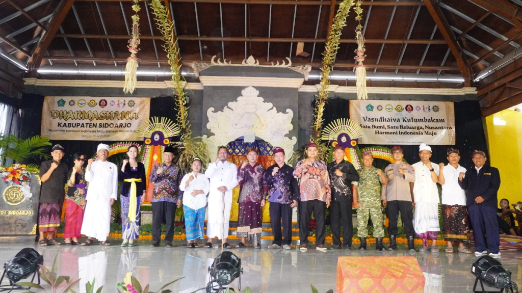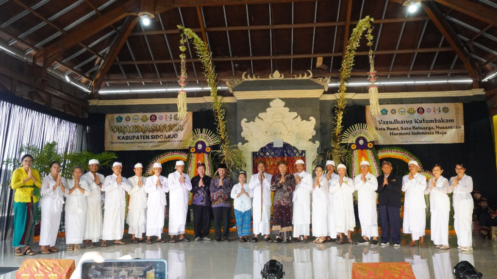Sidoarjo (republikjatim.com) - Kerukunan antarumat beragama di Kabupaten Sidoarjo kembali menunjukkan wajah yang menyejukkan. Di balik kentalnya tradisi masyarakat lokal, umat Hindu di Sidoarjo baru saja menggelar perayaan Dharma Shanti.  Sebuah tradisi yang memiliki esensi serupa dengan Halal bi Halal bagi umat Islam.