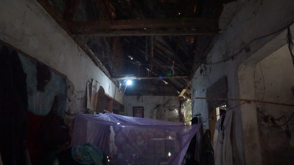 Dari hasil peninjauan, rumah milik Handoko mengalami kerusakan cukup parah. Terutama pada bagian atap yang sudah rusak dan lantai rumah yang kerap tergenang air saat hujan.