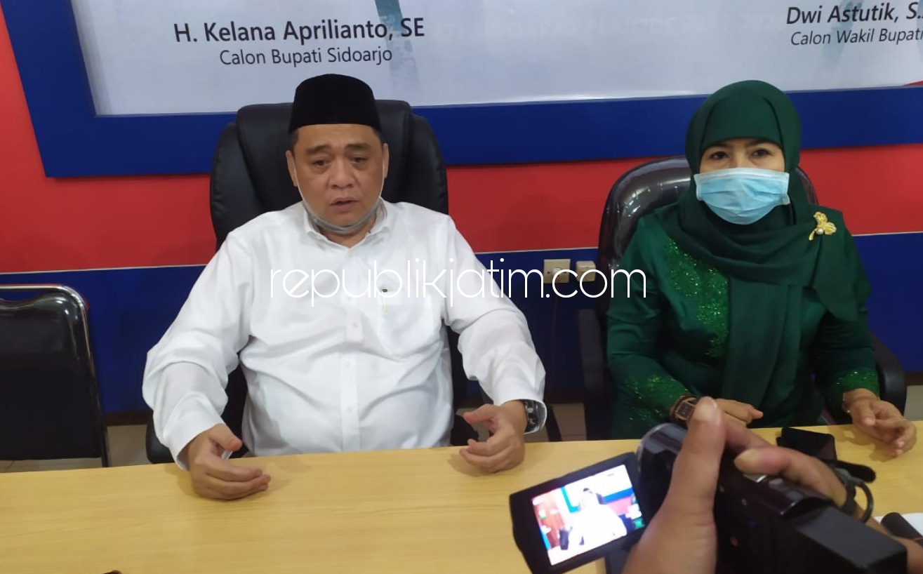 Sidoarjo (republikjatim.com) - Pasangam Calon (Paslon) Bupati dan Wakil Bupati Sidoarjo, Kelana Aprilianto dan Dwi Astutik (Berkelas) menggelar kegiatan Ngopi Bareng Media di Posko Pemenangan Perumahan Pondok Mutiara Sidoarjo, Rabu (14/10/2020). Dalam acara itu, Paslon nomot urut 3 ini, berkeinginan menjalin sinergi bersama seluruh wartawan dan media yang ada di Sidoarjo.