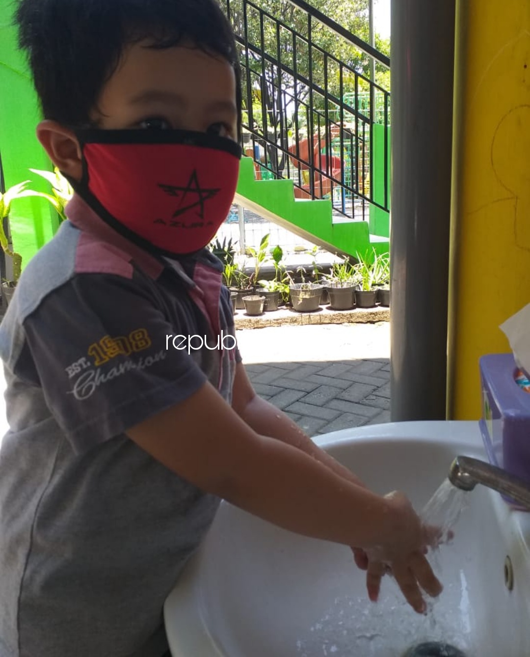 "Meski pembiasaan cuci tangan siswa tetap dilakukan para guru. Yakni setiap kali selesai pembelajaran, siswa diingatkan mencuci tangan memakai sabun dengan air mengalir," imbuhnya.