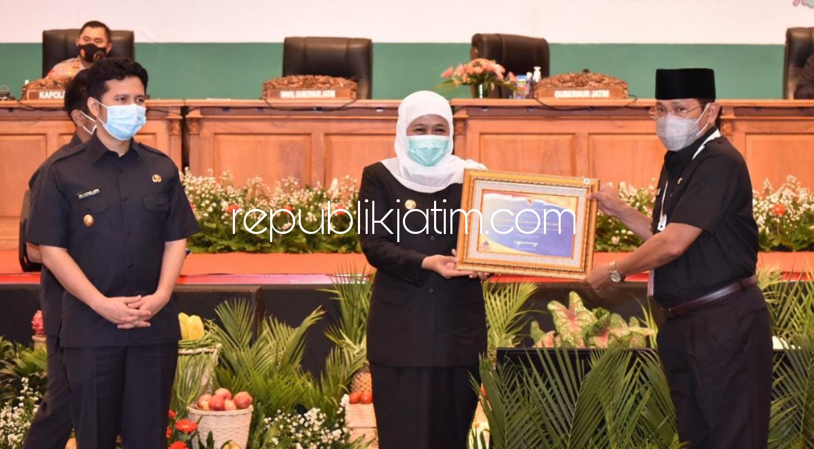 Sidoarjo (republikjatim.com) - Pemkab Sidoarjo kembali meraih opini Wajar Tanpa Pengecualian (WTP) atas Laporan Keuangan Pemerintah Daerah (LKPD) Tahun 2019. Penghargaan dari Menteri Keuangan (Menkeu) RI ini diberikan Gubernur Jawa Timur, Khofifah Indar Parawansa kepada Pj Bupati Sidoarjo, Hudiyono, di Ballroom Grand City Surabaya, Senin (19/10/2020).