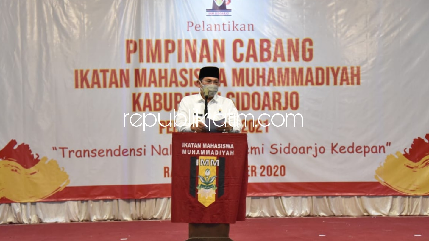 Sidoarjo (republikjatim.com) - Pj Bupati Sidoarjo, Hudiyono mengajak kader Ikatan Mahasiswa Muhammadiyah (IMM) ikut serta dalam membangun Sidoarjo. Ajakan ini disampaikan saat menghadiri pelantikan Pimpinan Cabang Ikatan Mahasiswa Muhammadiyah (PC IMM) Sidoarjo periode 2020-2021 di Gedung Langen Palikrama JL Mojopahit Sidoarjo, Rabu, (21/10/2020).